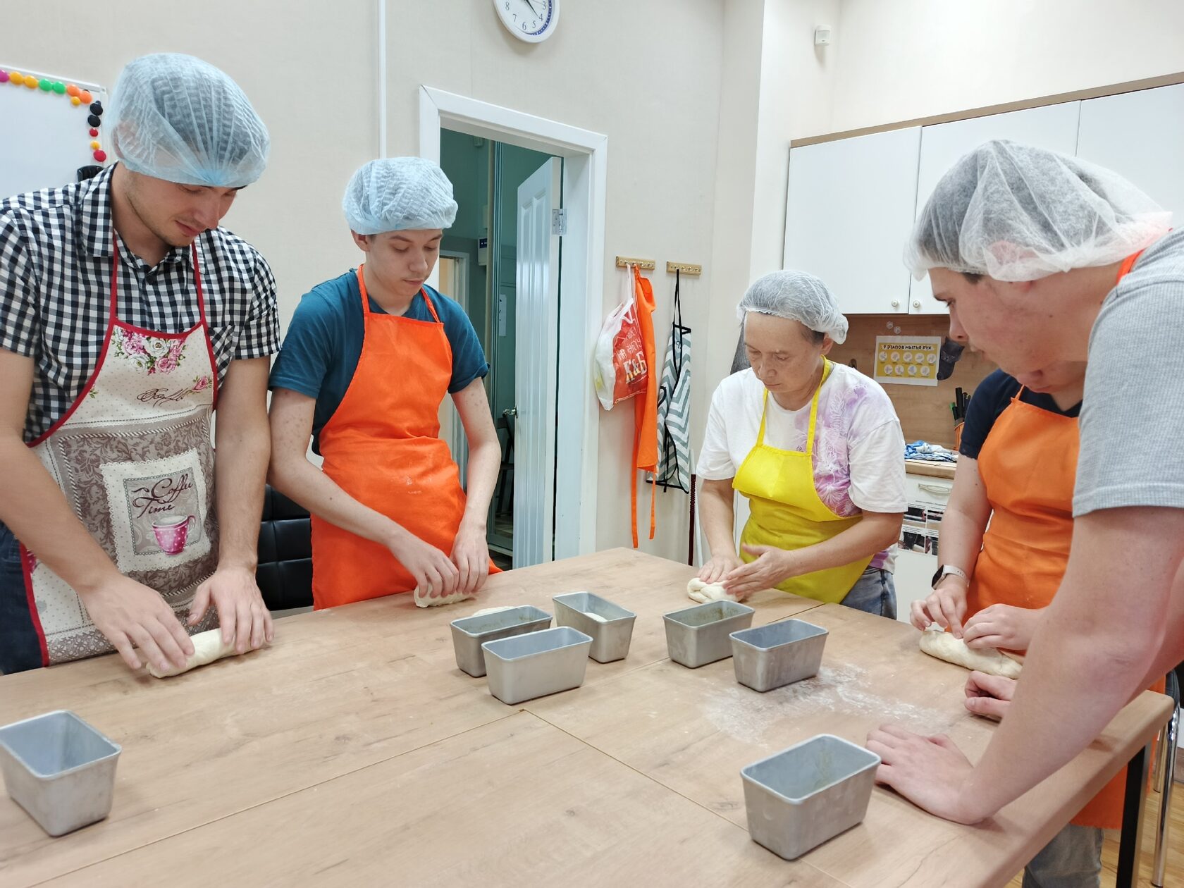 Под чутким руководством наставника Татьяны, ребята по алгоритму замешивают тесто, настаивают его, формируют и распределяют по весу в формы! Спустя несколько часов работы мы получаем отличный результат - вкусный ароматный и румяный хлеб 🍞